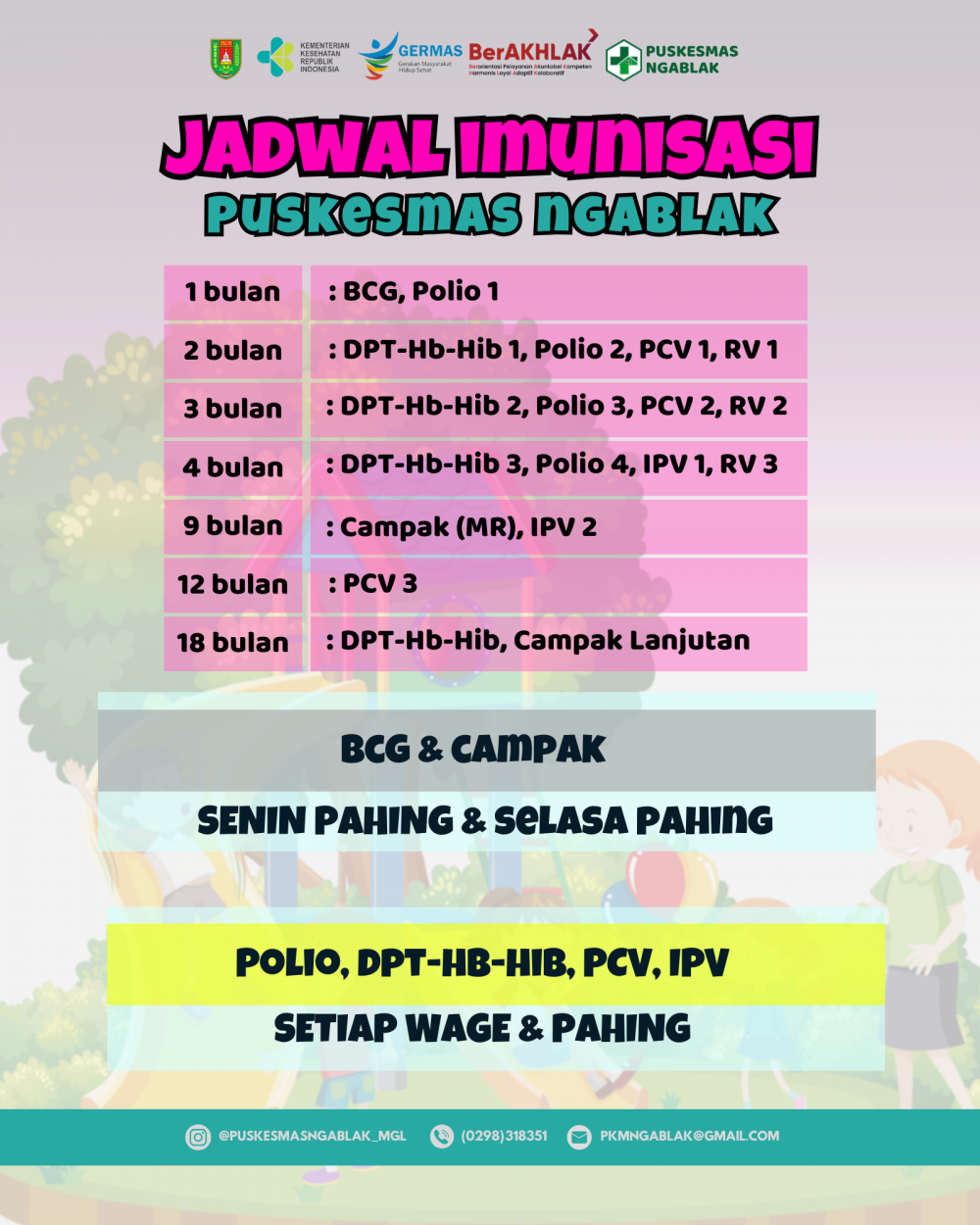 Hai sobat Puskesmas Ngablak, Yuk simak jadwal Imunisasi di Puskesmas Ngablak. Jangan sampai terlewat ya